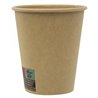 Copo de cartão Kraft para bebidas quentes com uma capacidade de 8Oz (290ml). Copo de papel descartável feito de celulose de fibra de madeira colhida em florestas sustentáveis.